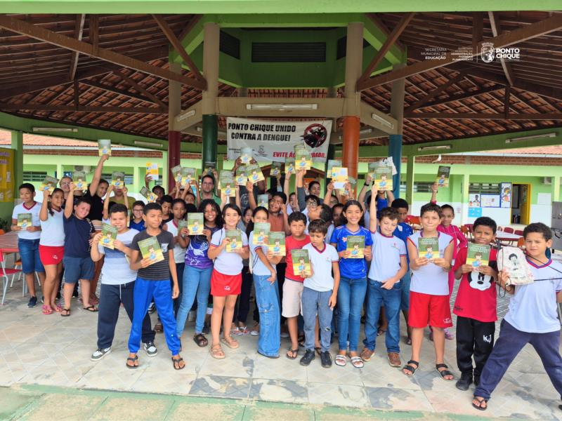 Registro da participação dos alunos na finalização das atividades do programa, com distribuição de kits educativos.