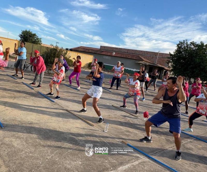 No dia 15 de setembro de 2025 (sábado), foi realizada atividade física orientada na Academia de Saúde do Município, contemplando ações de alongamento, aquecimento, ginástica e dança, caracterizando prática corporal voltada à promoção da saúde e do lazer. A atividade contou com a participação de 30 (trinta) pessoas, sob organização do Município, integrando as ações regulares de esporte e atividade física de participação.
